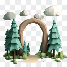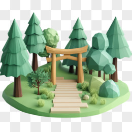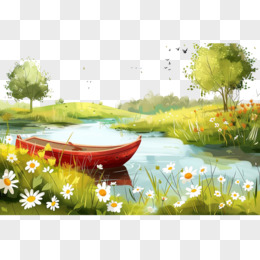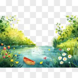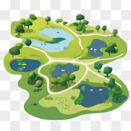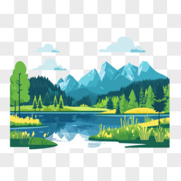 平面插画山脉湖泊绿树湿地公园免抠元素