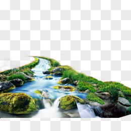 手绘小溪和树林免抠元素