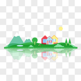 矢量湖水树林山村绿色风景