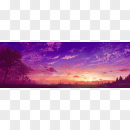 紫色天空夕阳树林
