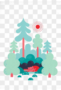 手绘插画风树林元素