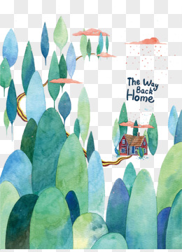 卡通手绘水滴树林创意元素