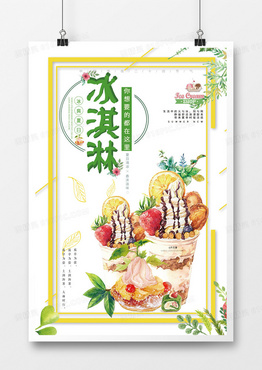 新鲜健康树莓奶香冰淇淋海报