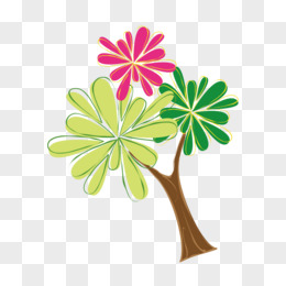 手绘卡通春天树木免抠素材