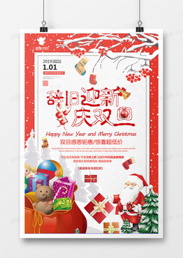 时尚红色辞旧迎新庆双旦促销海报