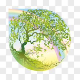水晶球四季树彩虹童趣矢量素材
