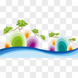 唯美精美卡通手绘环保山树