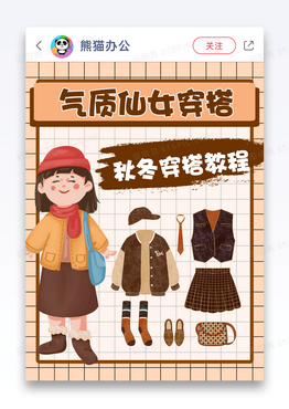 咖色清新简约春季穿搭小红书封面图片
