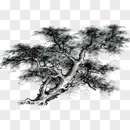 手绘落霜的柿子树和屋檐上的猫咪元素