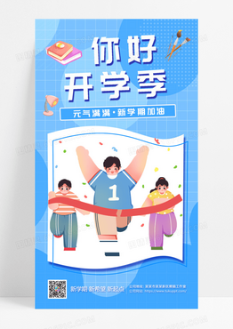 你好开学季加油人物书文具蓝色海报海报