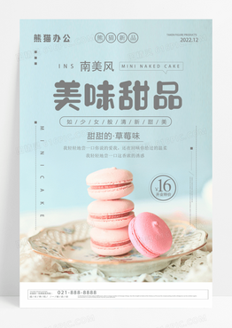 蓝色简约美味甜品甜品手机宣传海报
