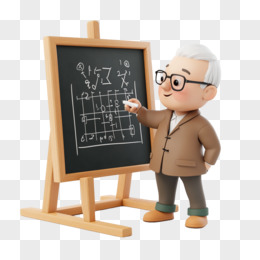 3D插画白头发的数学家在黑板计算数学题免抠元素