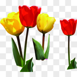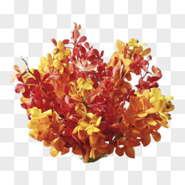 红黄花朵绿色树叶