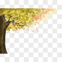 手绘卡通小清新秋天树叶变黄小场景
