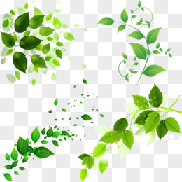 卡通矢量风吹绿色树叶免抠漂浮素材