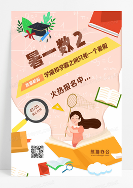 黄色卡通暑一数2教育数学培训班招生海报设计