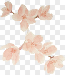 手绘水彩桃花树枝元素