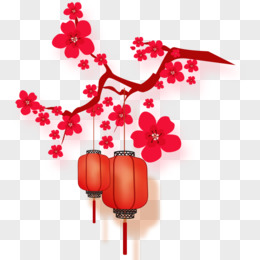彩色简约C4D立体唯美剪纸风花朵树枝灯笼