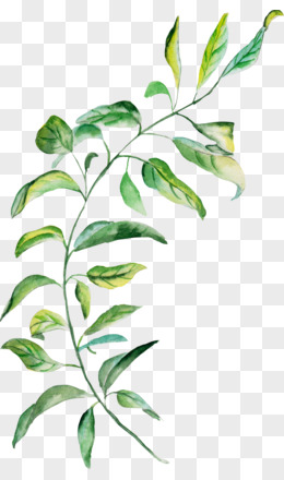 卡通绿叶树枝 素材