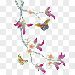 古风彩绘树枝蝴蝶绿叶