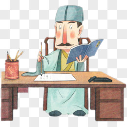 卡通古代儿童坐在书桌上启蒙看书免抠元素