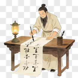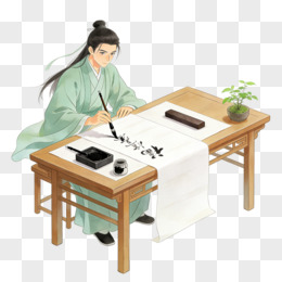 卡通一个古代文人在写书法免抠元素