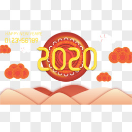 黄色渐变立体剪纸风格2020年份数字艺术字