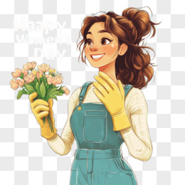 3D立体戴安全帽的女孩女工人抱花三八节妇女节快乐免抠元素