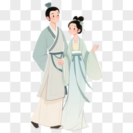 插画一对穿着古装的情侣拉手免抠元素