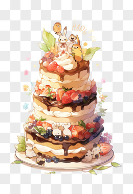 插画生日派对小装饰小蛋糕摆件免抠元素