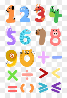 一组手绘卡通数字手写符号趣味动物造型素材合集
