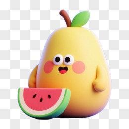 梨子西瓜囊夏天水果3D立体免抠元素