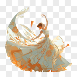 剪纸风舞蹈白色裙子民族舞舞者免抠元素