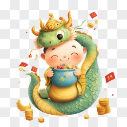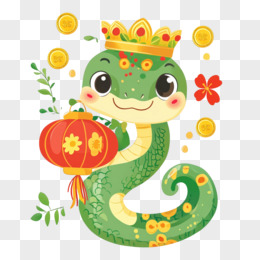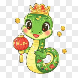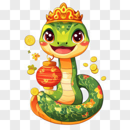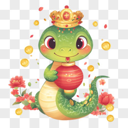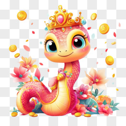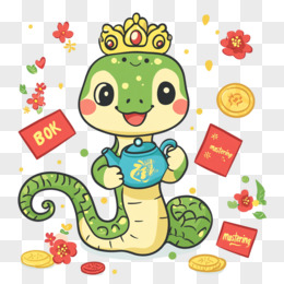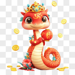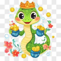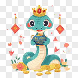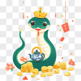 蛇年戴皇冠的蛇与金币结合免抠元素