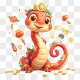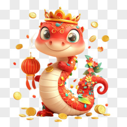 3D蛇年戴皇冠的蛇与金币结合免抠元素