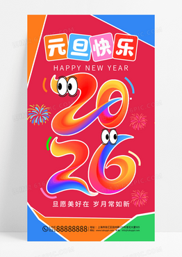 红色卡爱多巴胺2026马年数字卡通新年春节海报