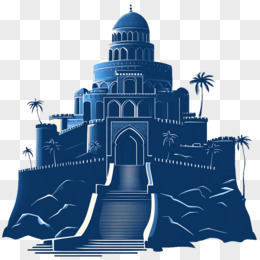 蓝色剪影建筑剪影伊拉克巴比伦遗址免抠元素