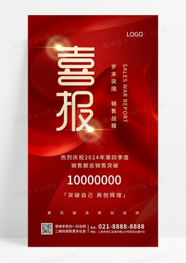 红色房地产喜报热销红金毛笔字肌理数字贺报手机宣传海报