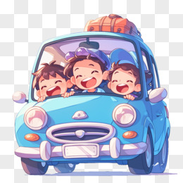卡通风旅游三个女孩坐大巴出游免抠元素