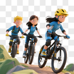 3D卡通三个山间骑自行车车的年轻人免抠元素