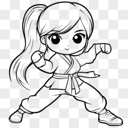 线稿风格女孩练习跆拳道的免抠元素