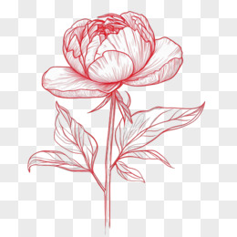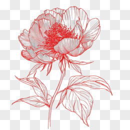 线稿红色牡丹免抠元素