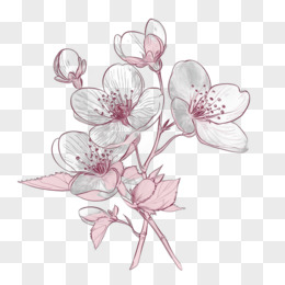 粉色线稿梅花樱花免抠元素
