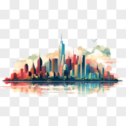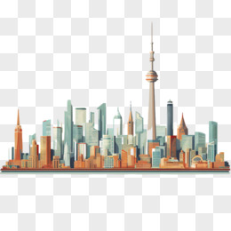 手绘风城市天际线免抠元素