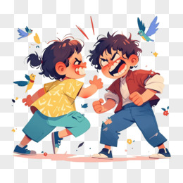 小朋友在打架的免抠元素
