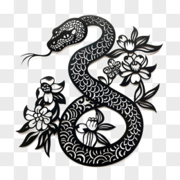 蛇年春节喜庆黑色剪纸新年窗花元素