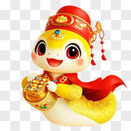 戴红帽子的金色俏皮可爱蛇年卡通蛇IP形象免抠元素
