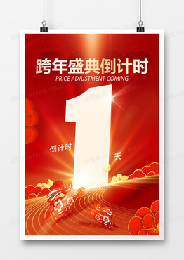红色喜庆中国风2023新年倒计时跨年倒计时1天海报设计