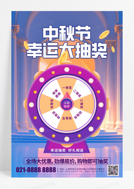 中秋节幸运大抽奖好礼相送海报设计电商紫色
