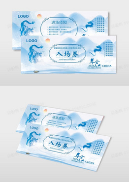 水墨山水中国风蓝色水墨中国风年度总结公司年会庆典入场券